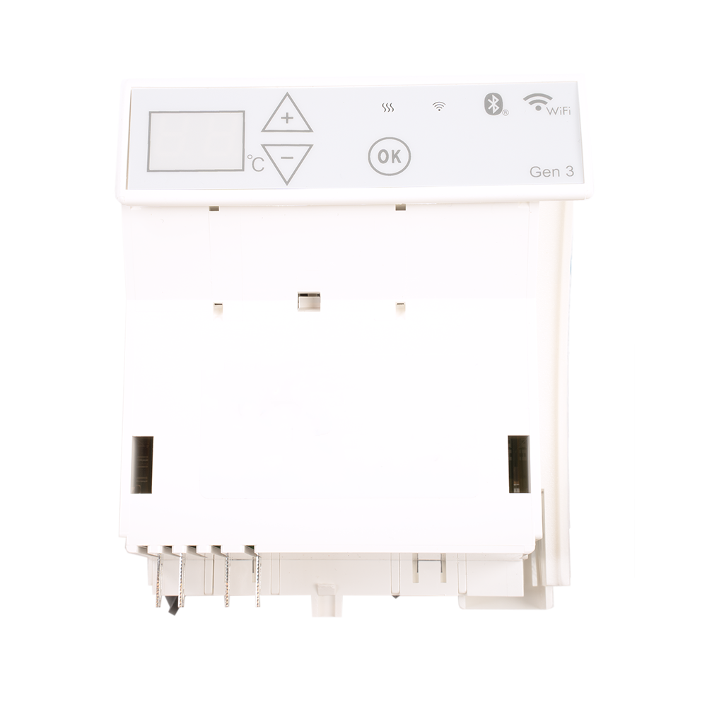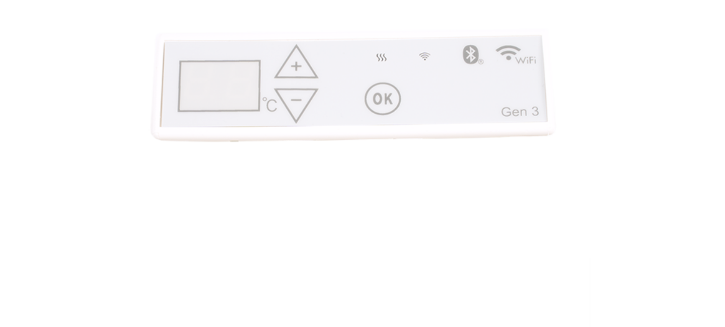 WiFi-termostater kan enten styres via Glamox Heating appen når den er koblet opp på nettverket, eller manuelt direkte på termostaten.
